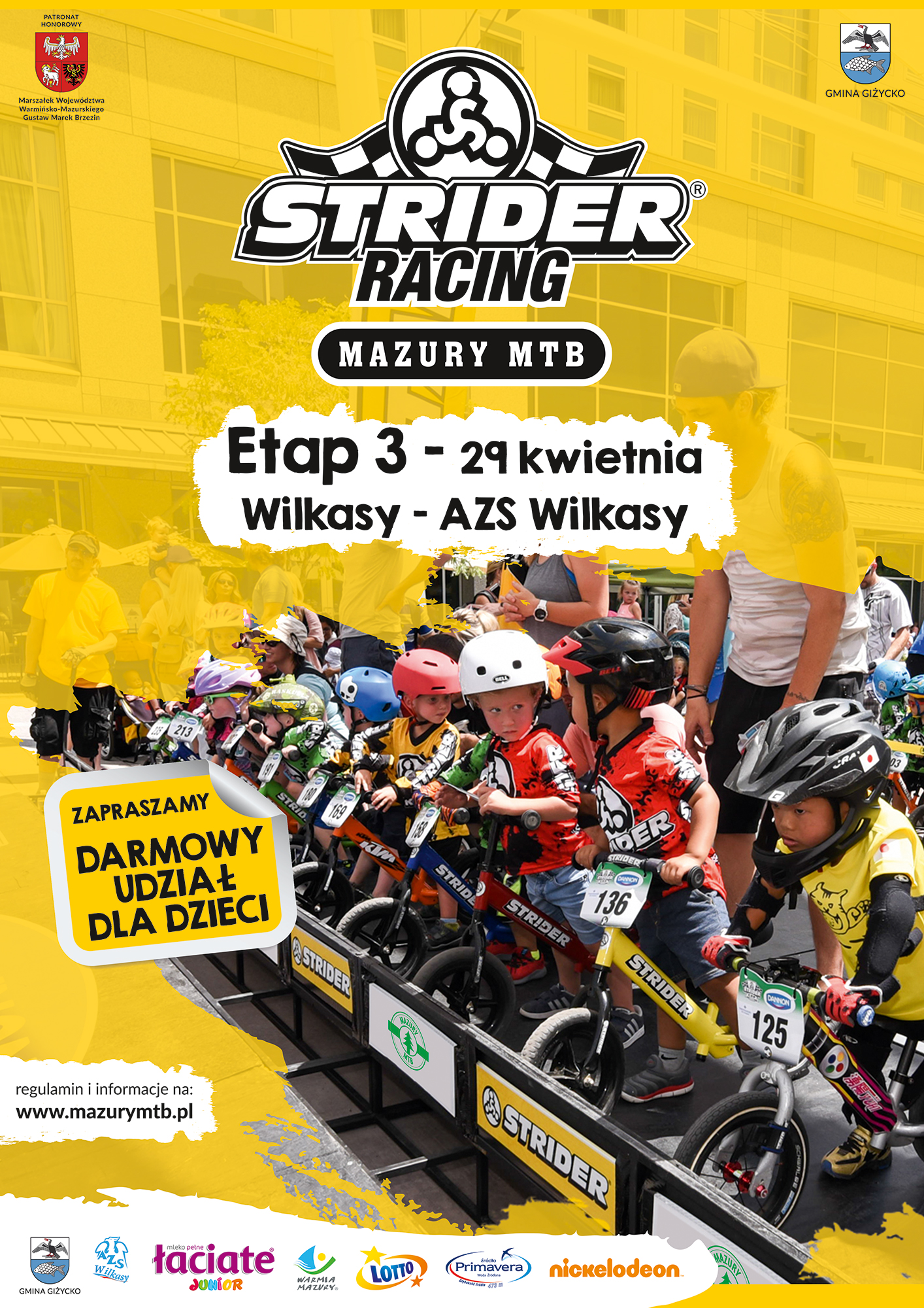 - godz. 13.00 – dekoracja zwycięzców wyścigu Strider Cup Mazury MTB