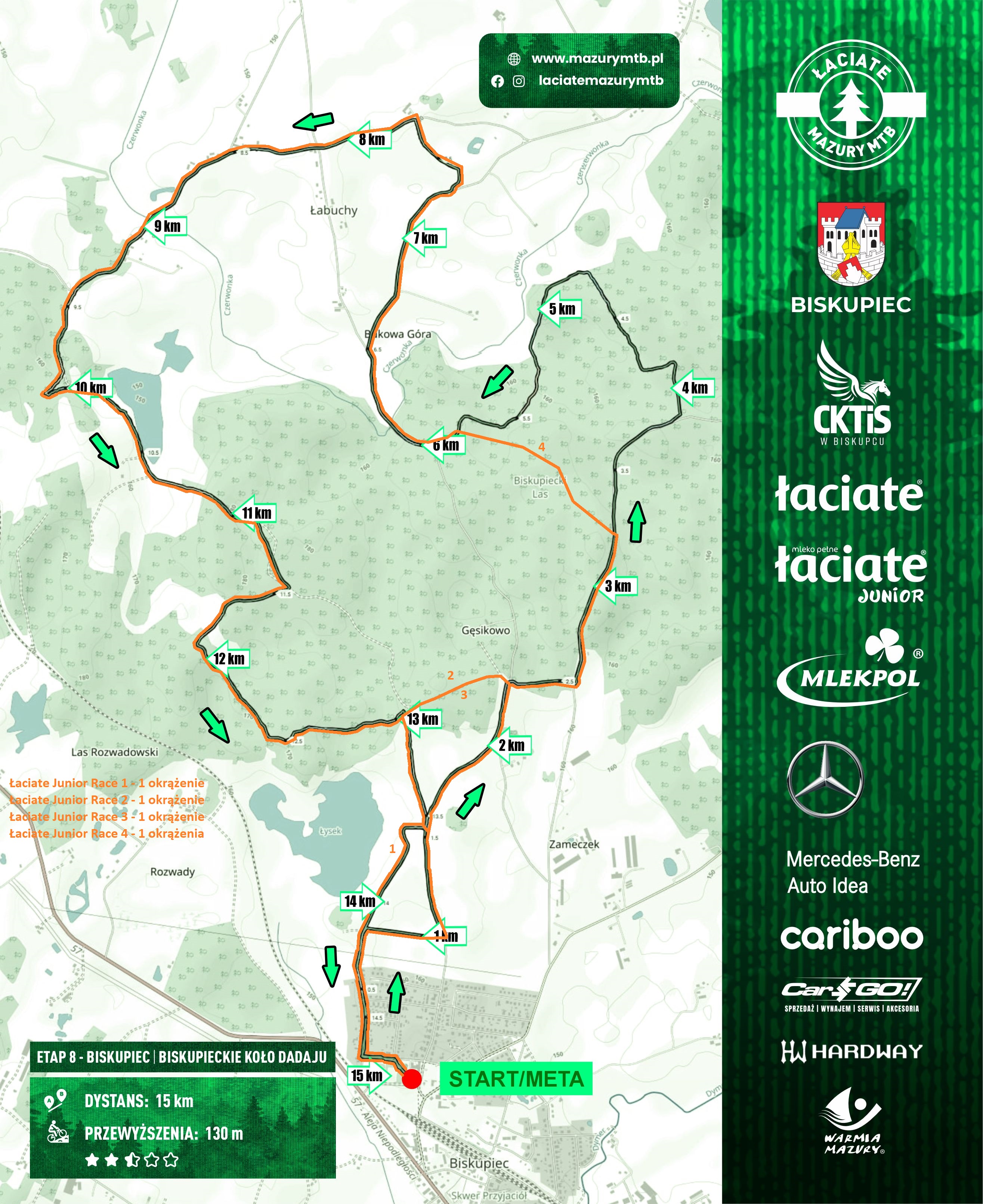 Sponsorem strategicznym cyklu Mazury MTB są marki: Łaciate Junior, Cariboo, CarGO! .